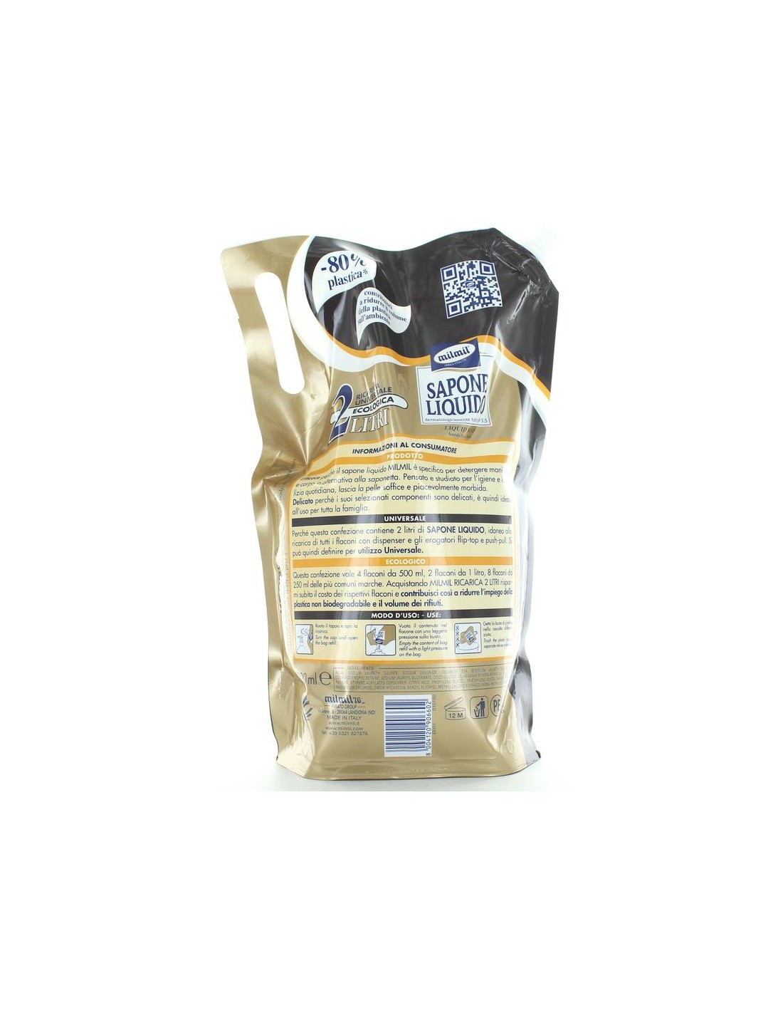 È un sapone efficace perchè il sapone liquido mil mil ricarica argan 2 lt è indicato per detergere mani, viso e corpo in alternativa alla classica saponetta, pensato e studiato per l'igiene e la detersione quotidiana, lascia la pelle soffice, idratata e piacevolmente morbida.